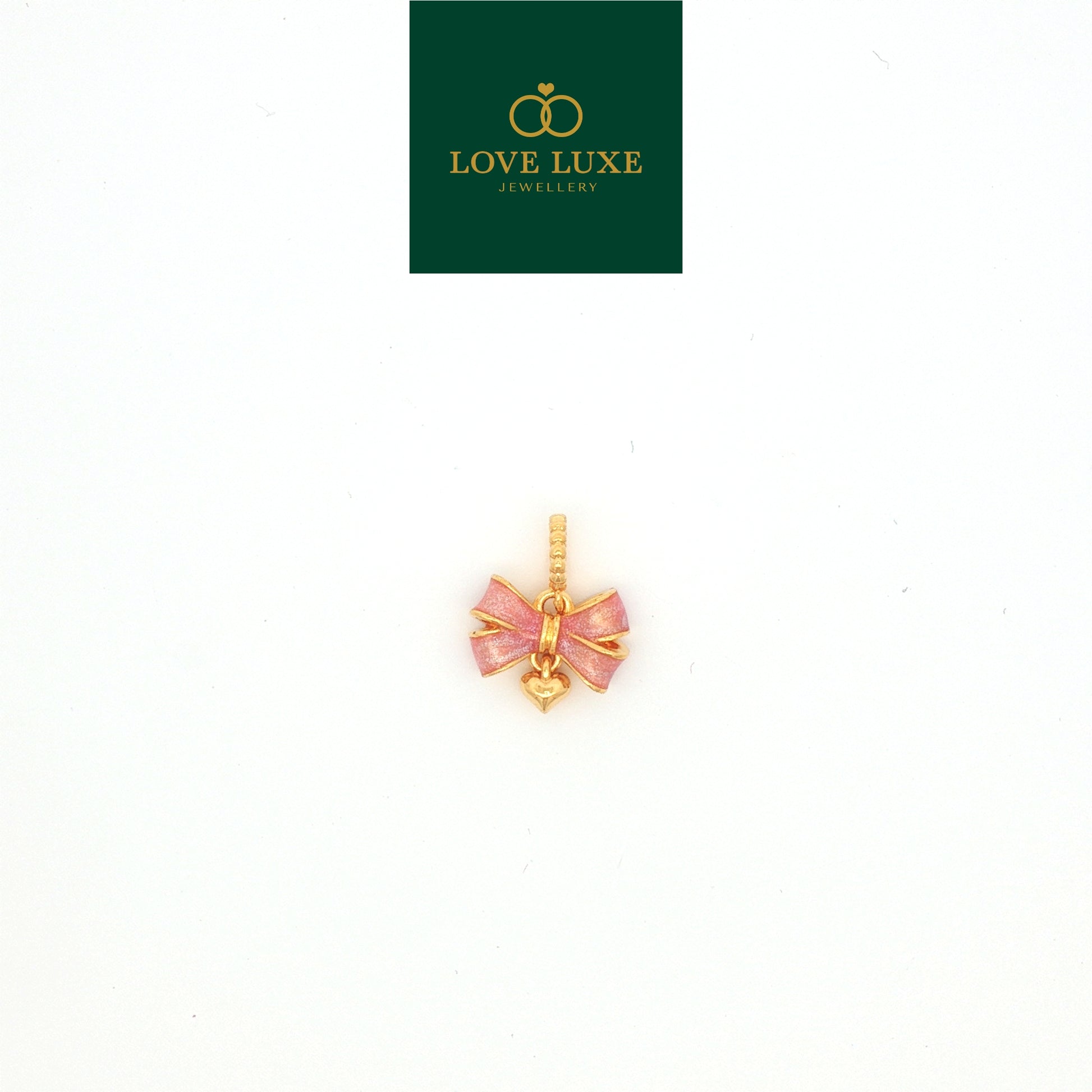 LOVE LUXE Pink Ribbon with Hanging Love Hard Gold Charm | Emas 916/22K